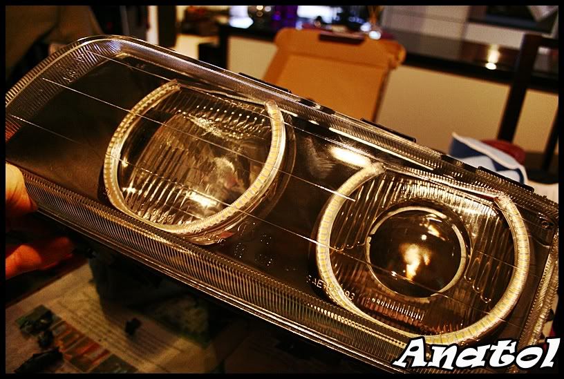 Kilka dni temu "popełniłem" w Sreberku wymianę rongów.Były CCFL-e ,ale się już znudziły :D.Zakupiłem ringi SMD (żółte),nowe klosze , uszczelki i xenony philipsa D2S. :D