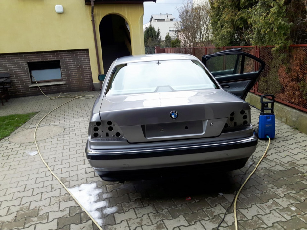 Pieknie sie prezentuje. Tylne czerwone jak wykonales. Przedni brak ramki tez w mojej mi chodzi po glowie duzo ladniej sie prezentuje e38 bez blachy z przodu wg mnie tylko wymyslic trzeba inne miejce dla tablicy bo dla mnie za szyba odpada ew tymczasowo.
