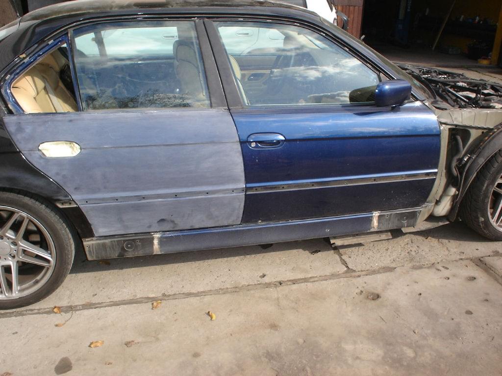 No ale mniejsza z tym, jak już wspomniałem auto jeździ 2 lata po Polsce. Przede mną miało dwóch właścicieli w Polsce i jestem niemal pewien, że niespodzianka którą zastałem przy okazji naprawy prawego boku jest zasługą którego z nich. Przy rozebraniu drzwi blacharz zainteresował się pofalowaną nakładką progową i okazało się dlaczego dostałem w gratisie te poliftowe kawałki plastiku. Niestety sprawdza się teoria, że mało kto robi lifting dla poprawy samopoczucia. W przypadku mojej 7 polifowe nakładki na progi zostały założone w związku z tym, że ktoś wyrżnął prawym bokiem w coś twardego i na dodatek postanowił naprawić 7er metodami adekwatnymi dla trabanta - tekturą i pianką budowlaną 8/ 8/ 8/ 8/