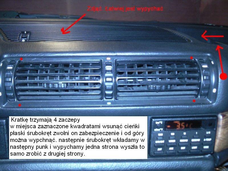 Widziałem w necie kilka fot, gdzie centralny nawiew jest podświetlony. Chodzi o punkty czerwony, niebieski i boczne punkty. Poniżej fotka tutaj akurat w E34.