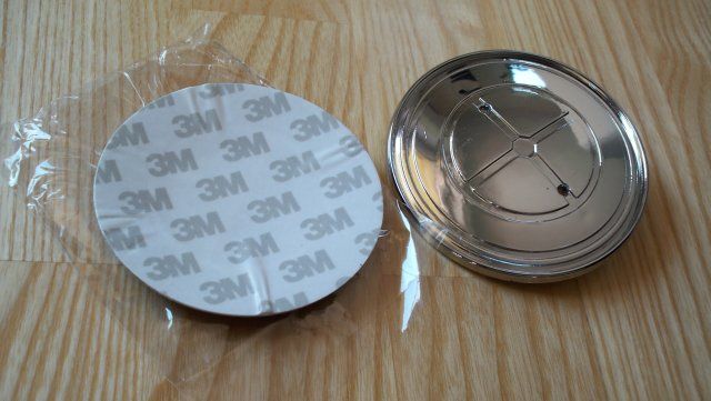 Emblemat na maskę i klapę bagażnika składa się osobno z loga i srebrnego gniazda/obwódki (można albo zamontować całość, albo na oryginalne niebieskie logo nakleić czarne bez potrzeby wyciągania całego emblematu z maski)
