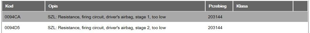 Problem wyglądał następująco, jadąc wyskoczył błąd DRIVER AIRBAG FAULT i ogólny SAFETY SYSTEM (kontrolka poduszki na liczniku)